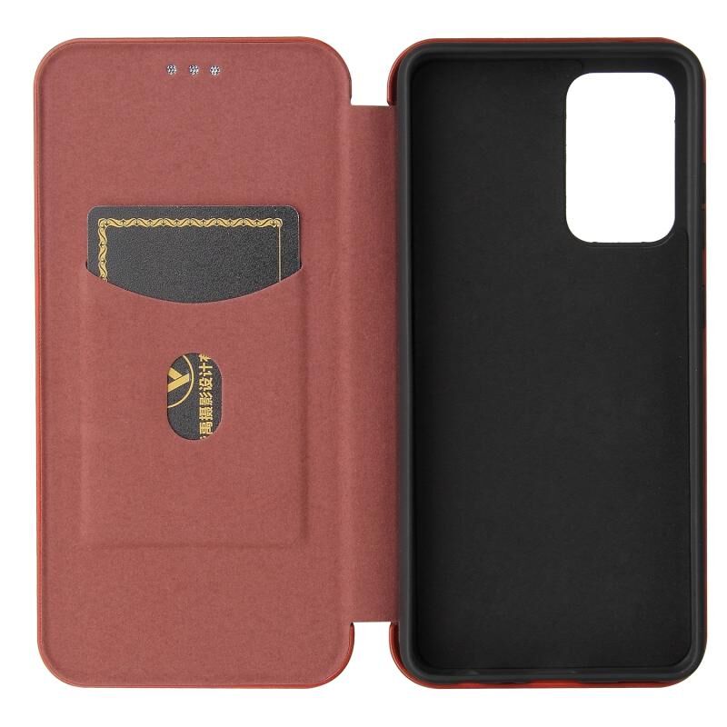 Θήκη για Samsung Galaxy A52 5G / 4G με υφή ανθρακονημάτων, οριζόντια, αναδιπλούμενη από TPU + PC + Δερματίνη PU με θήκη για κάρτες (Καφέ)