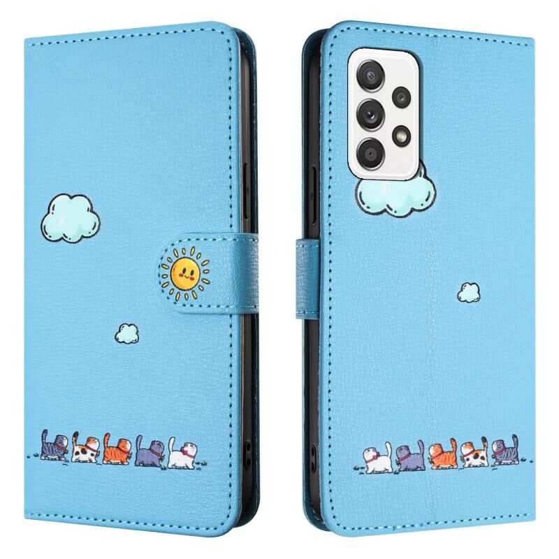 Θήκη τηλεφώνου από δέρμα με σχέδια γάτας για Samsung Galaxy A52 5G / 4G (Κόκκινο)