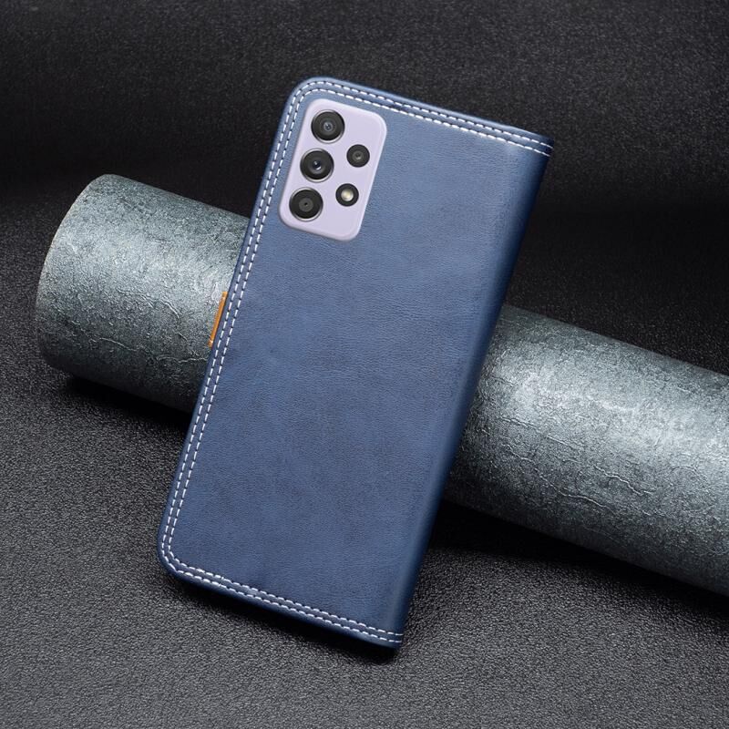 Θήκη τηλεφώνου από δέρμα με διπλή ραφή και αντιστοίχιση χρωμάτων για Samsung Galaxy A52 5G / 4G (Μαύρο)