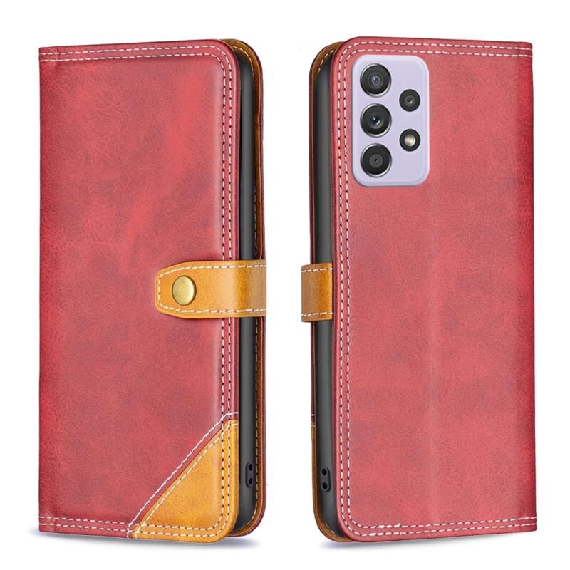 Θήκη τηλεφώνου από δέρμα με διπλή ραφή και αντιστοίχιση χρωμάτων για Samsung Galaxy A52 5G / 4G (Μαύρο)