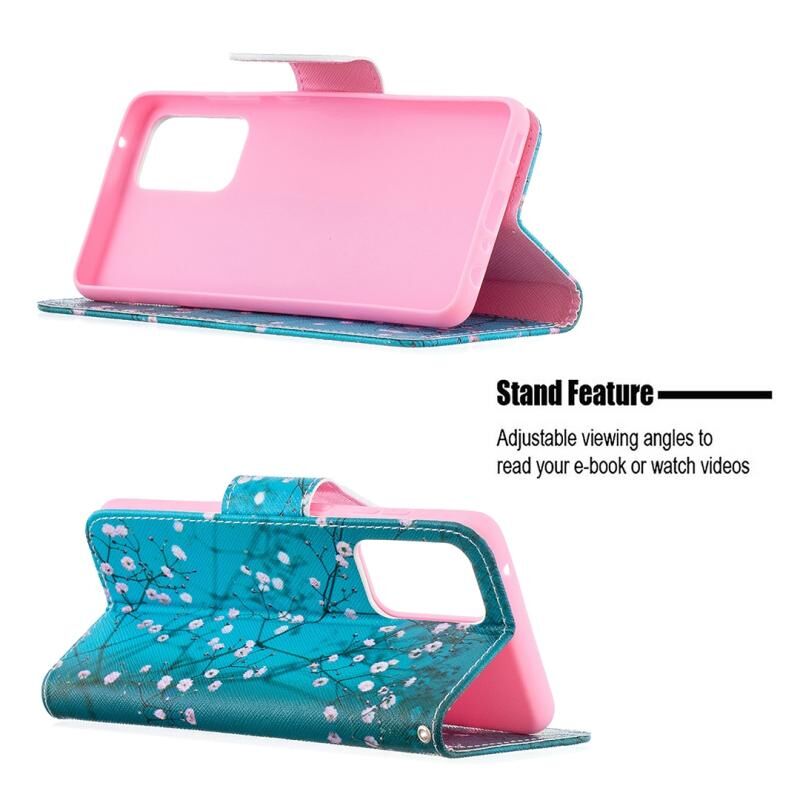 Θήκη δέρματος οριζόντιας αναδίπλωσης με σχέδιο ζωγραφικής σε χρώματα για Samsung Galaxy A52 5G / 4G με βάση στήριξης & υποδοχές καρτών & πορτοφόλι (Λουλούδι Δαμασκηνιάς)