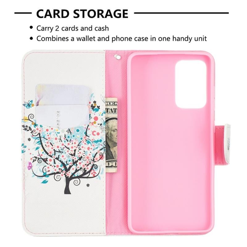 Θήκη δέρματος οριζόντιας αναδίπλωσης με σχέδιο ζωγραφικής και χρώματα για Samsung Galaxy A52 5G / 4G με βάση στήριξης & υποδοχές καρτών & πορτοφόλι (Δέντρο)