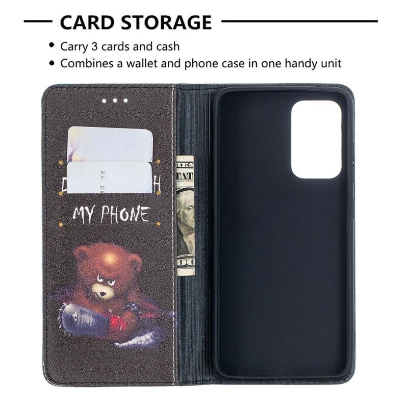 Θήκη Samsung Galaxy A52 5G/ 4G με πολύχρωμο σχέδιο, αόρατο μαγνητικό, οριζόντιο flip από δερματίνη PU με βάση & θήκες για κάρτες & πορτοφόλι (Αρκούδα)