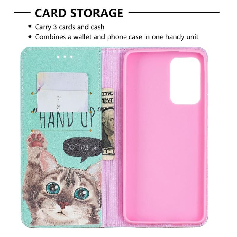 Θήκη Samsung Galaxy A52 5G/ 4G με πολύχρωμο σχέδιο, αόρατο μαγνητικό, οριζόντιο flip από δερματίνη PU με βάση & θήκες για κάρτες & πορτοφόλι (Γάτα)