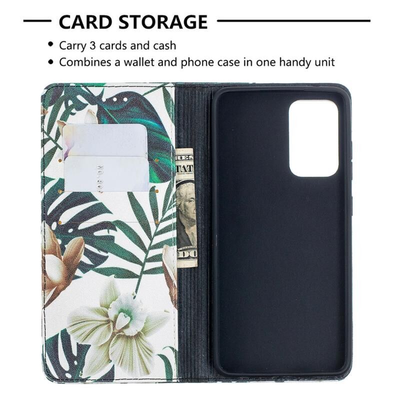Θήκη Samsung Galaxy A52 5G/ 4G με πολύχρωμο σχέδιο, αόρατο μαγνητικό, οριζόντιο flip από δερματίνη PU με βάση & θήκες για κάρτες & πορτοφόλι (Μπλε Φύλλο)