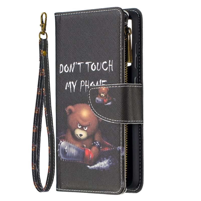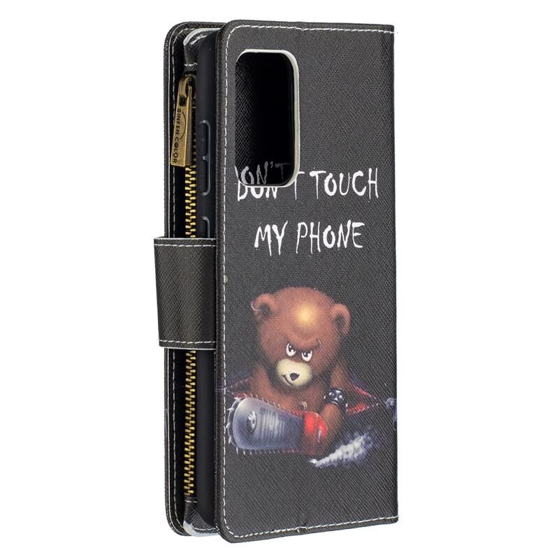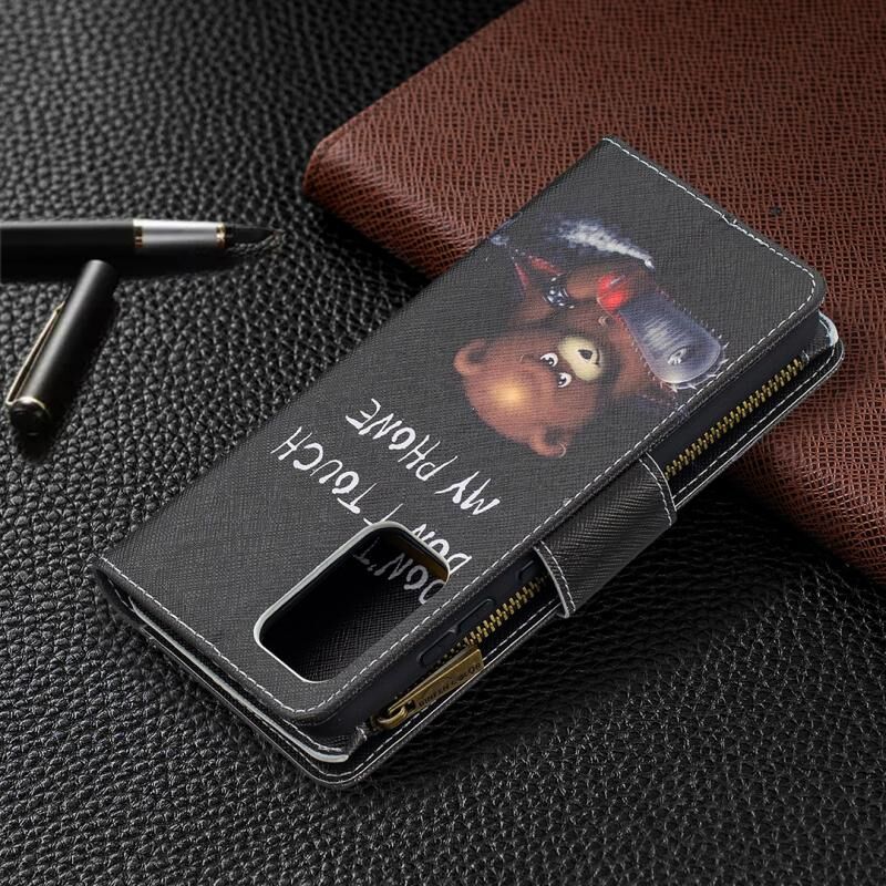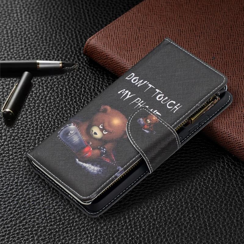 Θήκη δέρματος οριζόντιας αναδίπλωσης με φερμουάρ και σχέδια για Samsung Galaxy A52 5G / 4G με βάση για κάρτες και πορτοφόλι (Αρκούδα)
