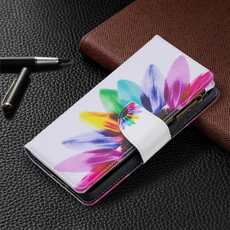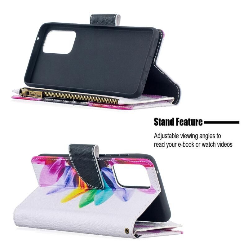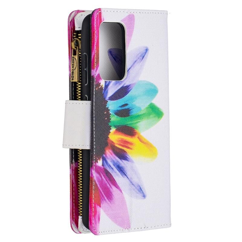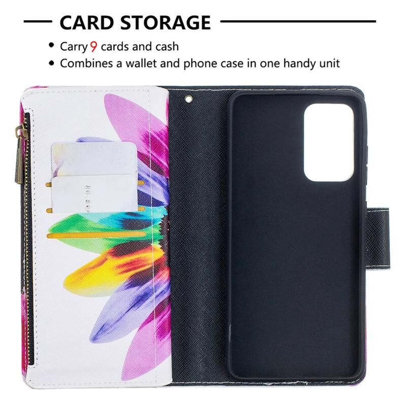 Θήκη δέρματος οριζόντιας αναδίπλωσης με φερμουάρ και σχέδια για Samsung Galaxy A52 5G / 4G, με βάση & θήκες καρτών & πορτοφόλι (Ηλιάνθος)