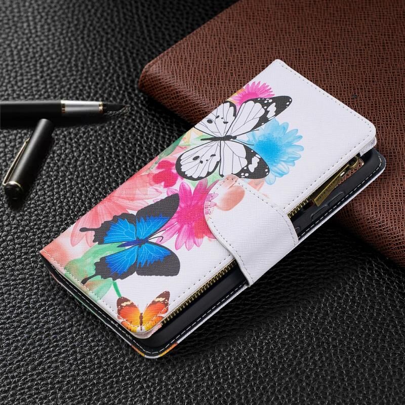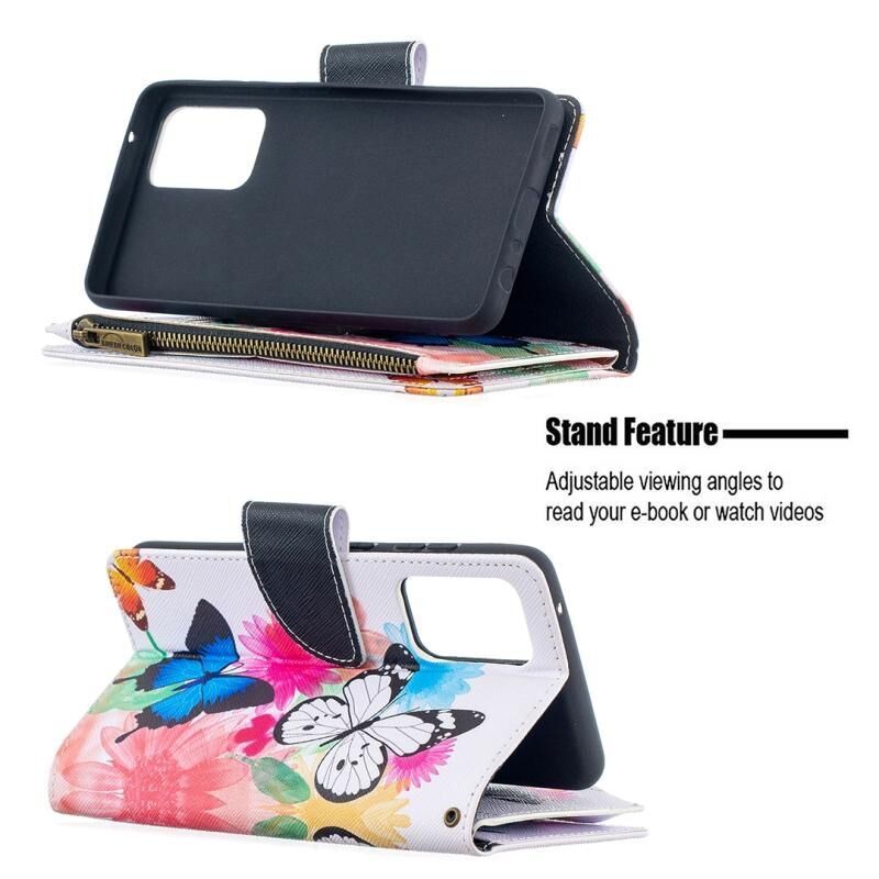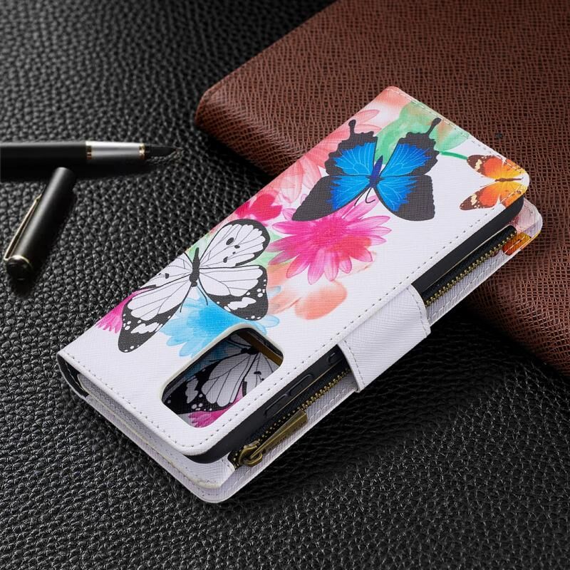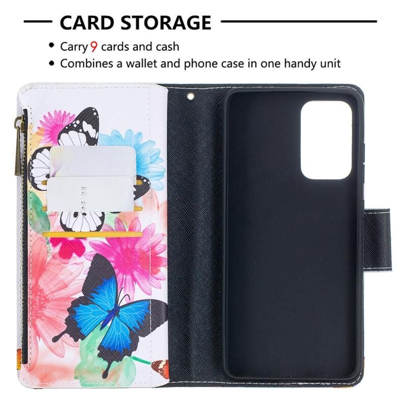 Θήκη δέρματος οριζόντιας αναδίπλωσης με φερμουάρ και σχέδιο ζωγραφικής σε χρώματα για Samsung Galaxy A52 5G / 4G με βάση για κάρτες & θήκη πορτοφολιού (Κόκκινο)