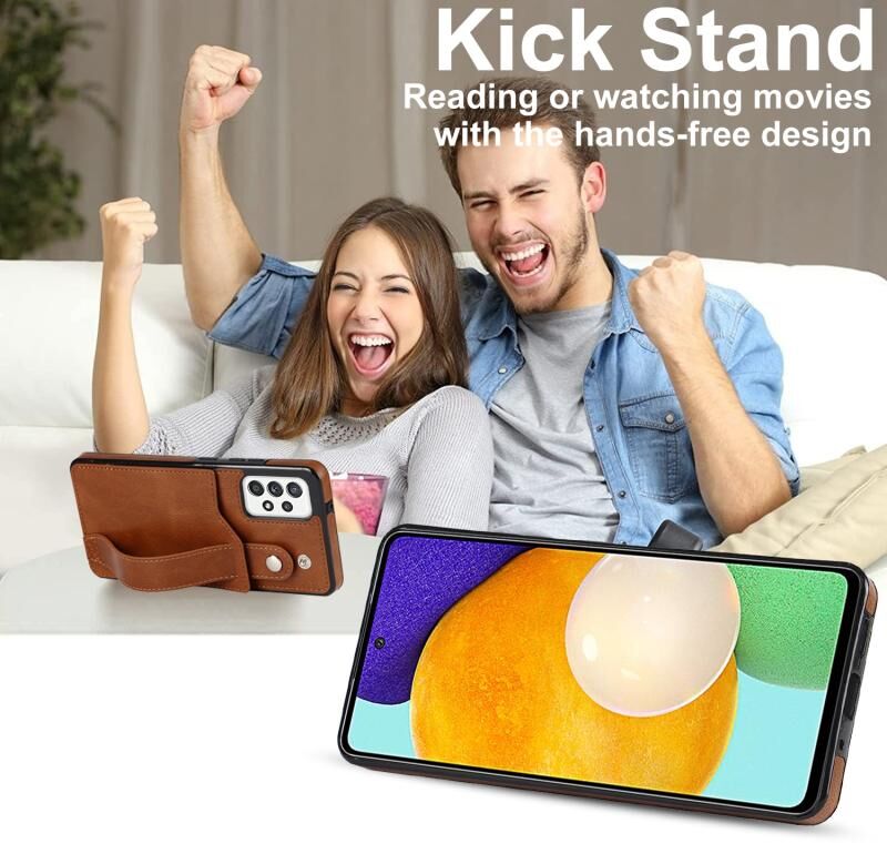 Για Samsung Galaxy A52 5G / 4G Crazy Horse υφή Shockproof TPU + PU δέρμα υπόθεση με υποδοχή κάρτας & λουράκι καρπού κάτοχος (καφέ)