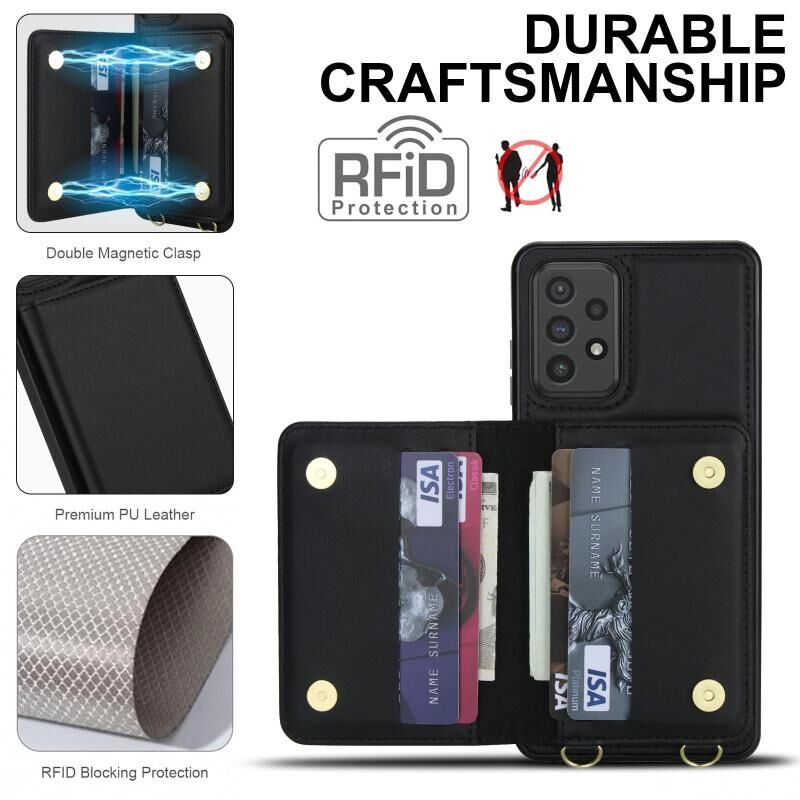 Θήκη κινητού Samsung Galaxy A52 5G / 4G από δέρμα με διπλή αγκράφα, πορτοφόλι και ιμάντα ώμου (Λευκό)