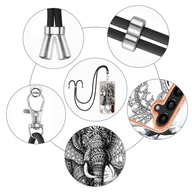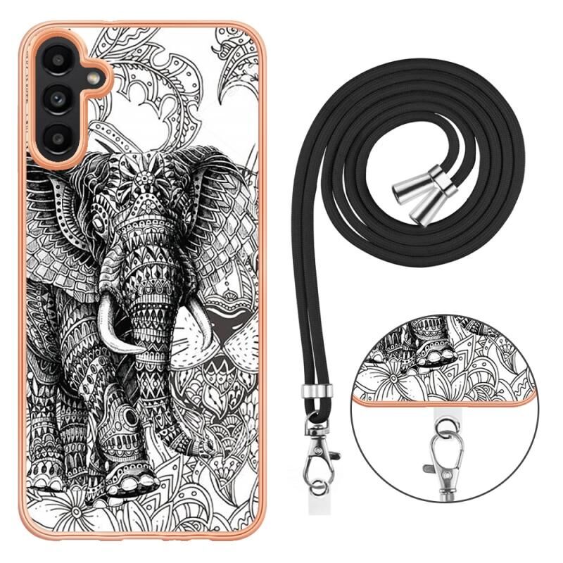 For Samsung Galaxy A52 5G / 4G Electroplating Dual-side IMD Phone Case with Lanyard(Totem Elephant)