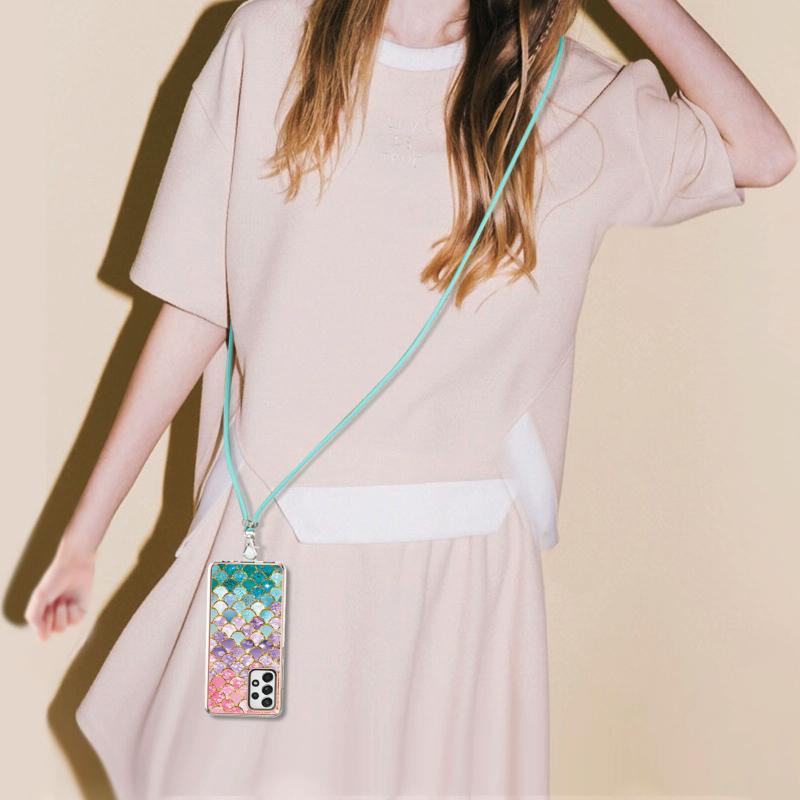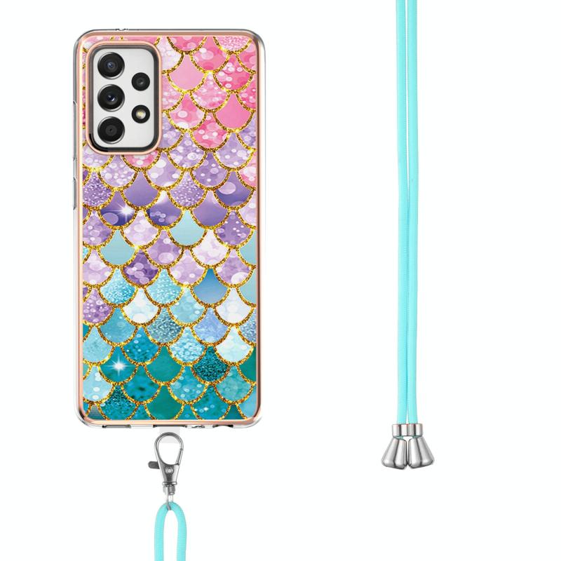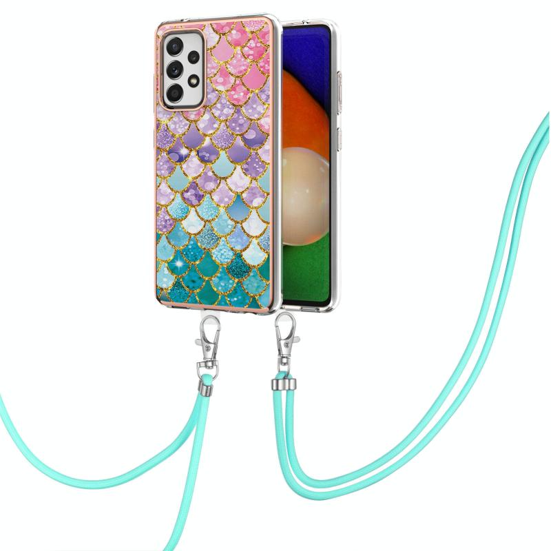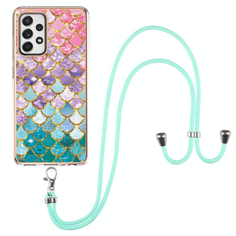 Θήκη προστασίας IMD TPU με ηλεκτρολυτικό σχέδιο για Samsung Galaxy A52 5G / 4G, ανθεκτική σε κρούσεις, με κορδόνι λαιμού (Πολύχρωμες Λέπια).