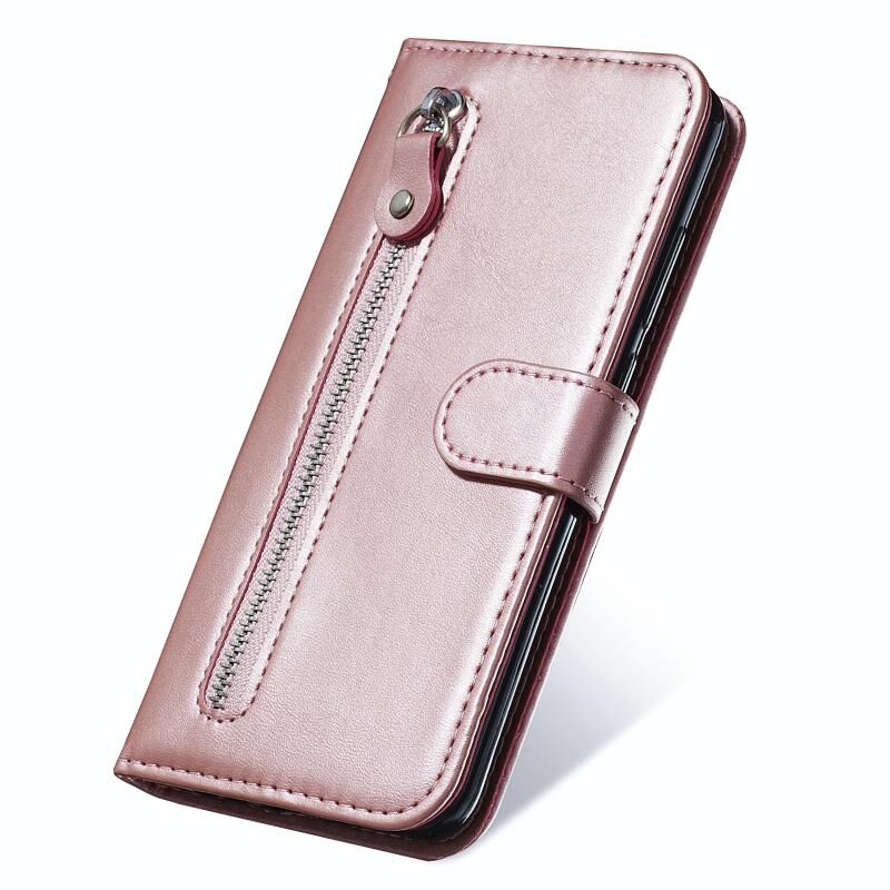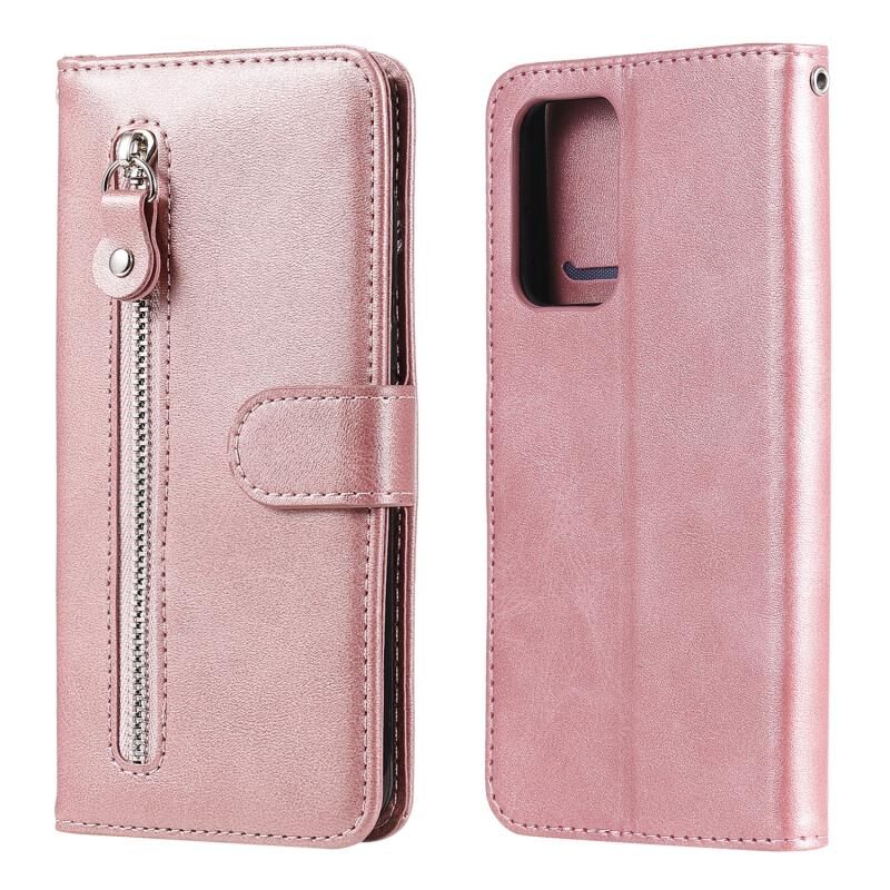 Για Samsung Galaxy A52 5G/4G Μόδα μοσχάρι υφή φερμουάρ οριζόντια Flip δερμάτινη θήκη με Stand & υποδοχές για κάρτες & λειτουργία πορτοφόλι (Rose Gold)