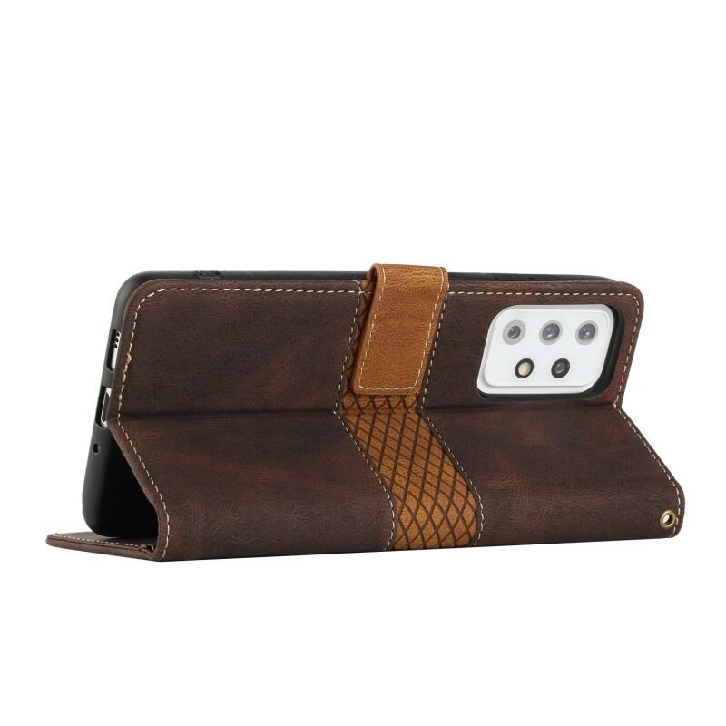 Για Samsung Galaxy A52 5G / 4G Grid ραφή δερμάτινη θήκη τηλεφώνου με κορδόνι (καφέ)
