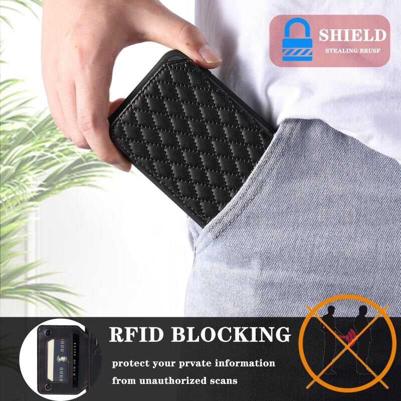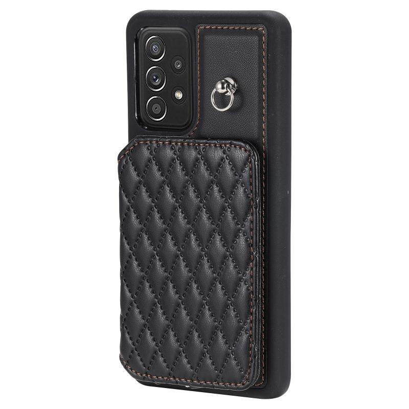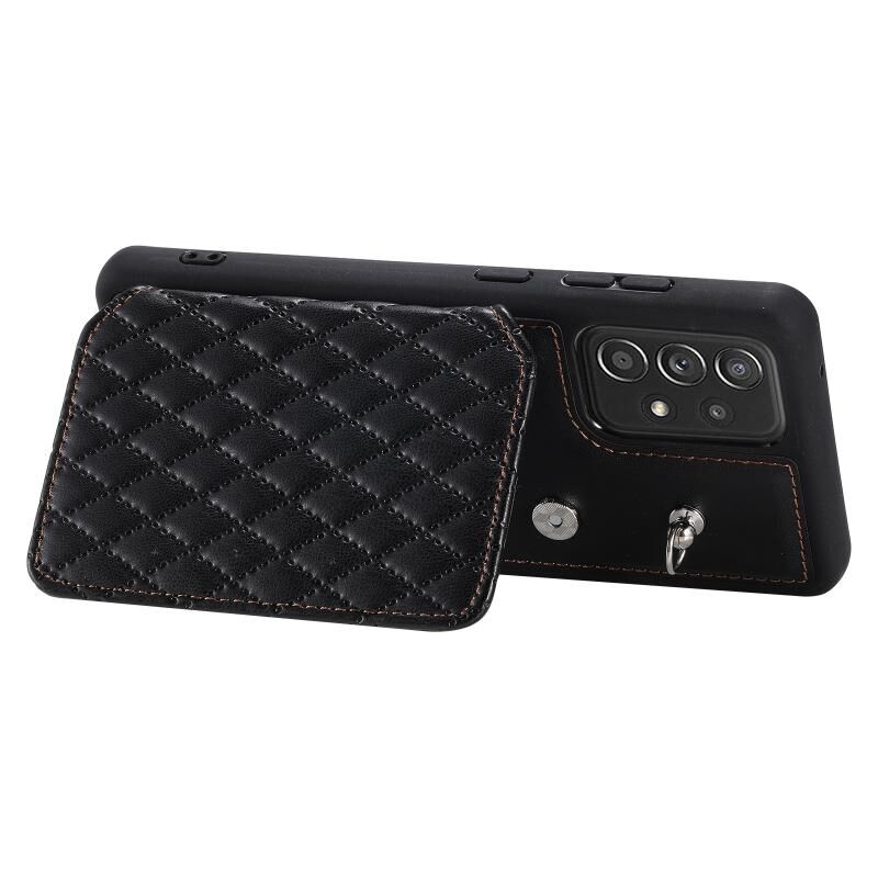 For Samsung Galaxy A52 5G / 4G Grid Texture Card Bag Phone Case with Lanyard(Μαύρο)