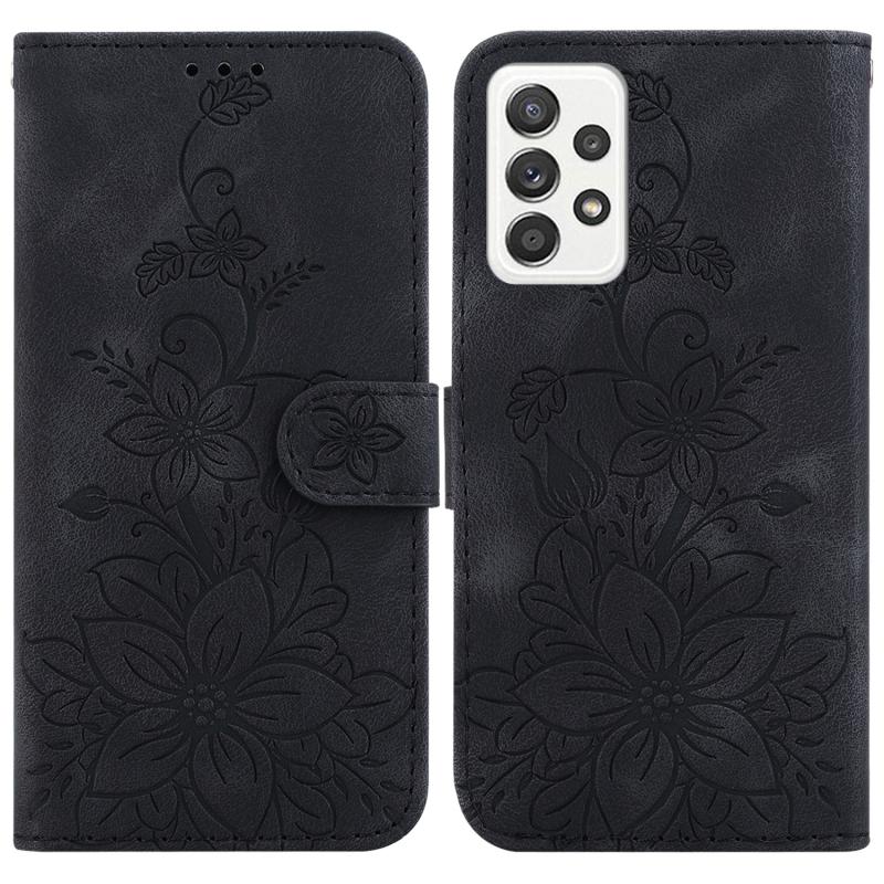 For Samsung Galaxy A52 5G / 4G Lily Embossed Leather Phone Case(Black)