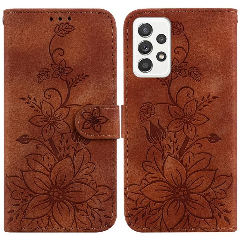 Θήκη τηλεφώνου δερμάτινη ανάγλυφη Lily για Samsung Galaxy A52 5G / 4G (Καφέ)