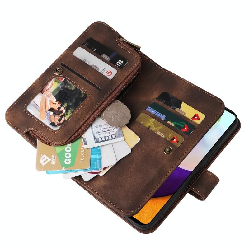 Για Samsung Galaxy A52 5G / 4G Πολυλειτουργική κάρτα Slot φερμουάρ πορτοφόλι δερμάτινη θήκη τηλεφώνου (καφέ)