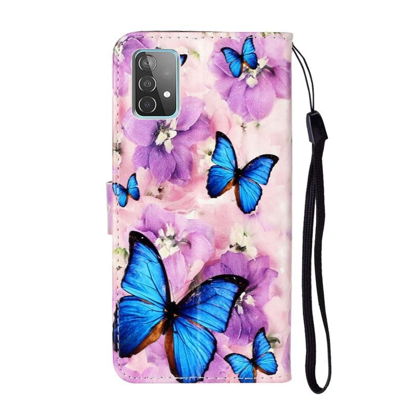 Θήκη Samsung Galaxy A52 5G / 4G με ανάγλυφο σχέδιο λαδιού, πολύχρωμη, οριζόντια, από δερματίνη PU με βάση στήριξης & θήκες για κάρτες & πορτοφόλι (Μπλε Κουκουβάγια)