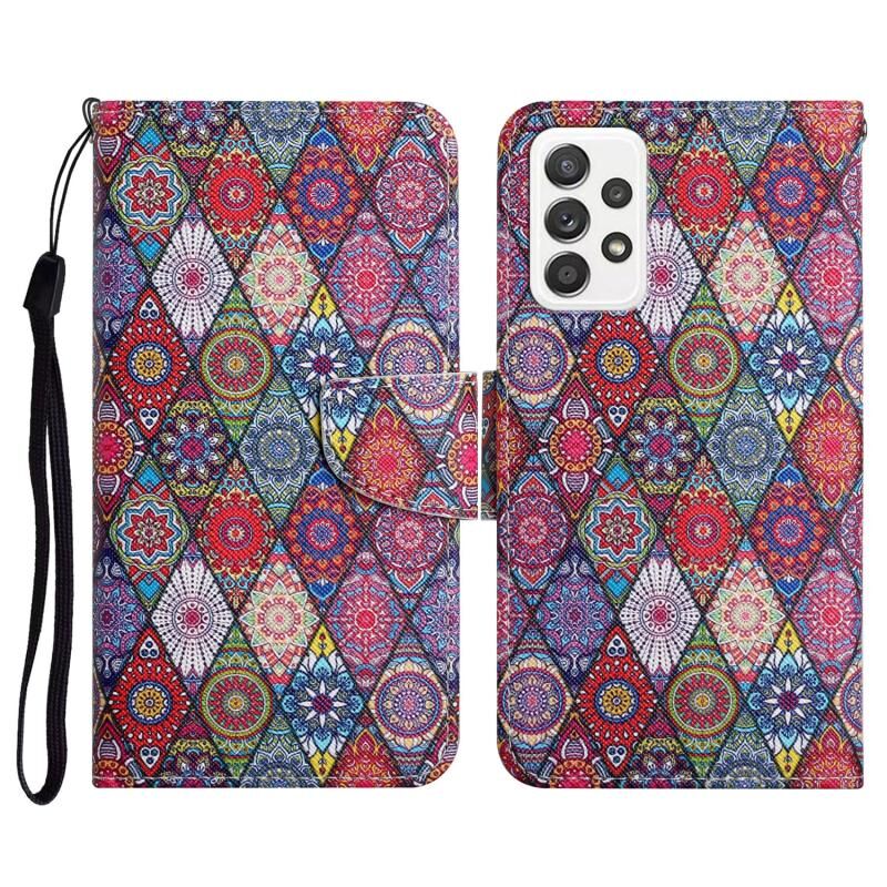 Θήκη δέρματος οριζόντιας αναδίπλωσης με σχέδιο ζωγραφικής για Samsung Galaxy A52 5G / 4G με βάση στήριξης & υποδοχή κάρτας & πορτοφόλι (Ρομβόσφαιρα Καλειδοσκόπιο)