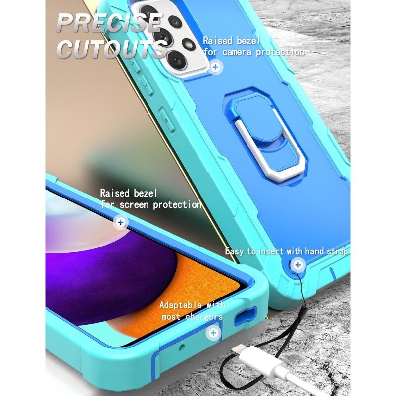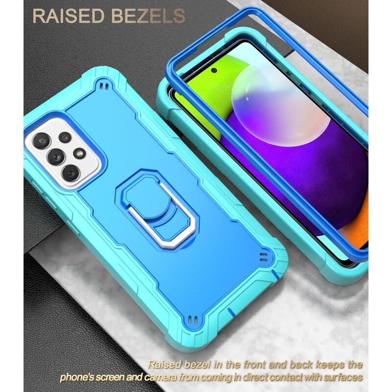 Για το Samsung Galaxy A52 5G / 4G PC + καουτσούκ 3 στρώσεων Αδιάβροχη προστατευτική θήκη με περιστρεφόμενη θήκη (πράσινο + μπλε)