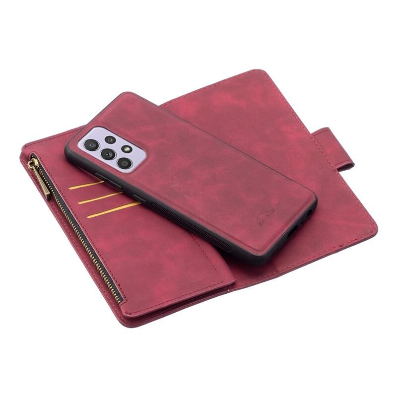 Για Samsung Galaxy A52 5G / 4G Skin Feel Αποσπώμενο μαγνητικό φερμουάρ Οριζόντια Flip PU δερμάτινη θήκη με υποδοχές πολλαπλών καρτών & υποδοχή & πορτοφόλι & κορνίζα & κορδόνι φωτογραφιών & κορδόνι (Κόκκινο)