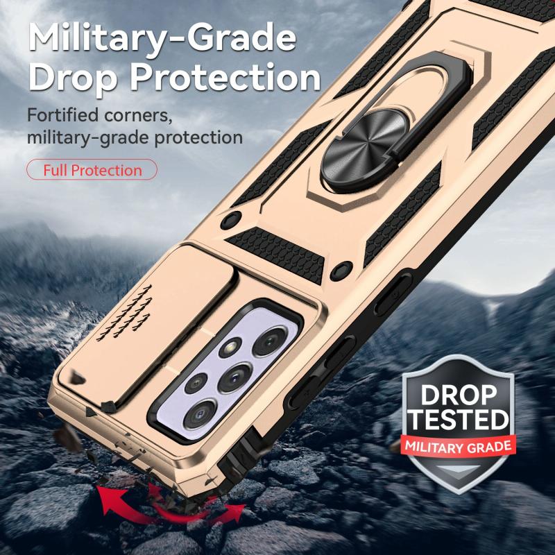 Θήκη κινητού τηλεφώνου με συρόμενο προστατευτικό κάμερας Camshield για Samsung Galaxy A52 5G / 4G (Χρυσός)