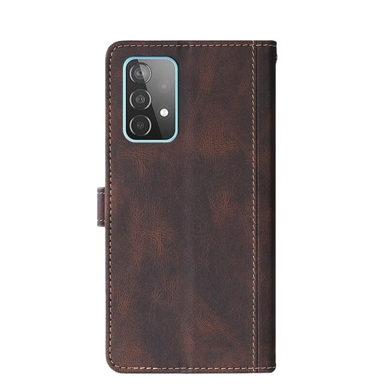 Για Samsung Galaxy A52 5G / 4G Stitching δέρμα αίσθηση μαγνητική πόρπη οριζόντια Flip PU δέρμα υπόθεση με κάτοχο & υποδοχές για κάρτες & πορτοφόλι (καφέ)