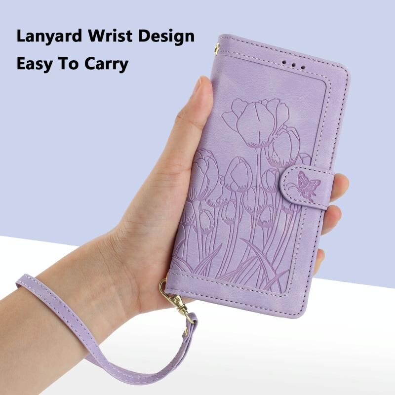 Θήκη τηλεφώνου δερμάτινη με ανάγλυφα τουλίπες και λουρί για Samsung Galaxy A52 5G / 4G (Ροζ)