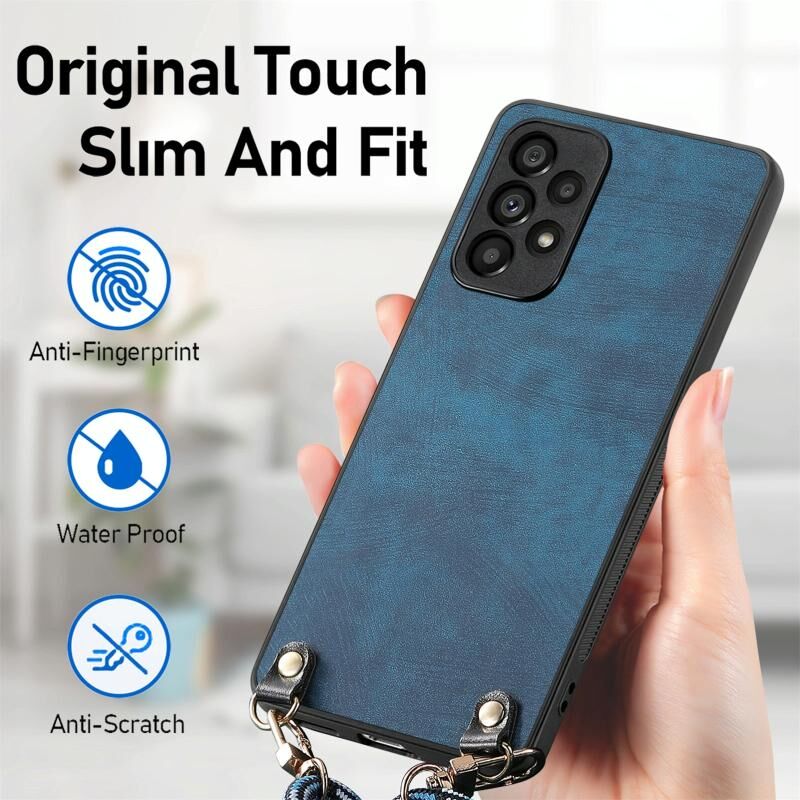 Για Samsung Galaxy A52 5G / 4G εκλεκτής ποιότητας δέρμα PC πίσω κάλυμμα τηλέφωνο υπόθεση με λουράκι σταυρού (Μπλε)