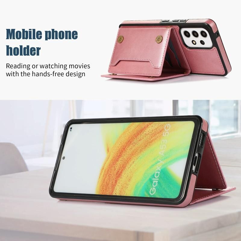 Για Samsung Galaxy A52 5G/A52s 5G Τρεις φορές RFID δερμάτινη θήκη τηλεφώνου με κορδόνι (ροζ χρυσό)
