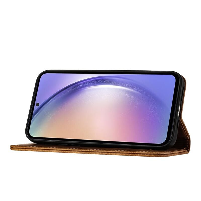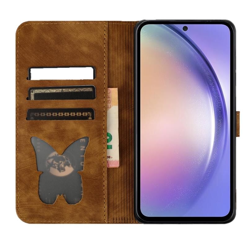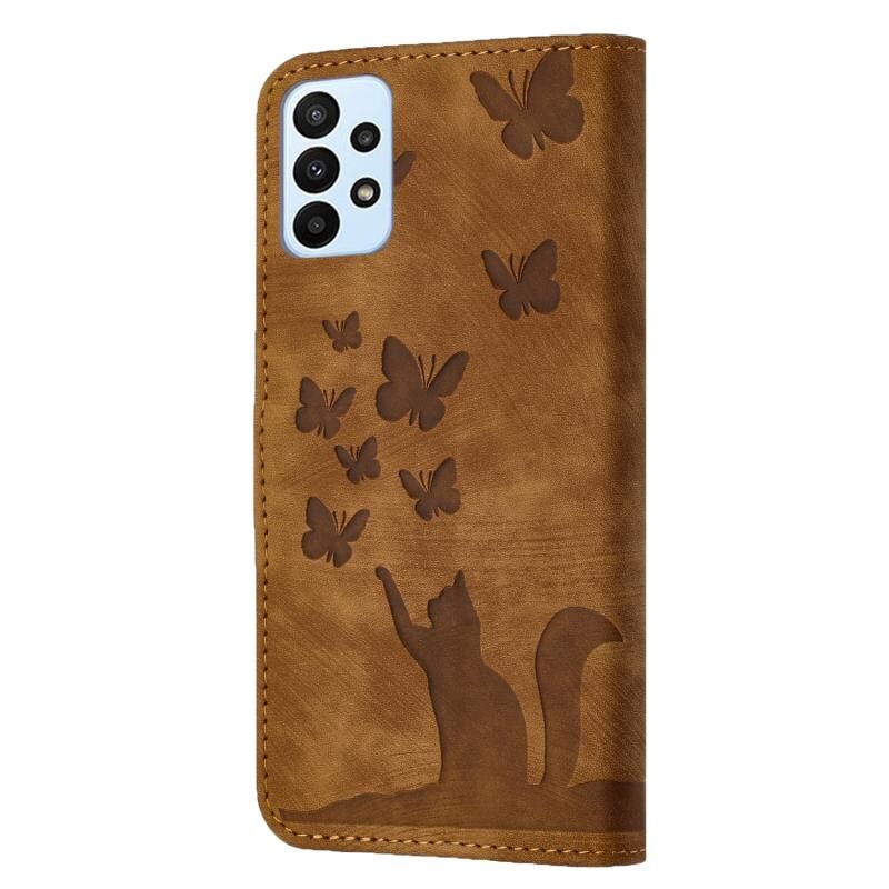 Θήκη τηλεφώνου Samsung Galaxy A52 5G / A52S, δερμάτινη, τύπου flip με ανάγλυφο σχέδιο πεταλούδας και γάτας (Καφέ)