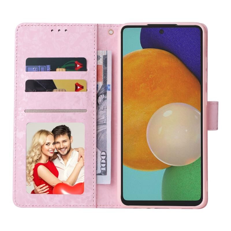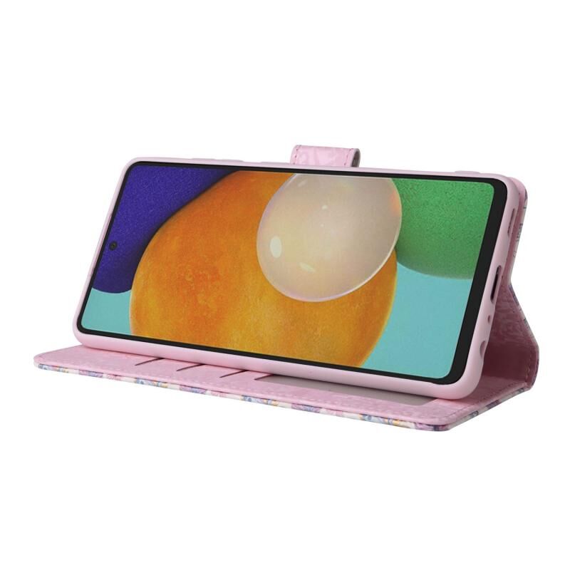 Θήκη δερμάτινη με σχέδιο "Pansies" και τεχνολογία RFID για Samsung Galaxy A52 5G, με φινίρισμα μπρονζέ (χρυσαφί).