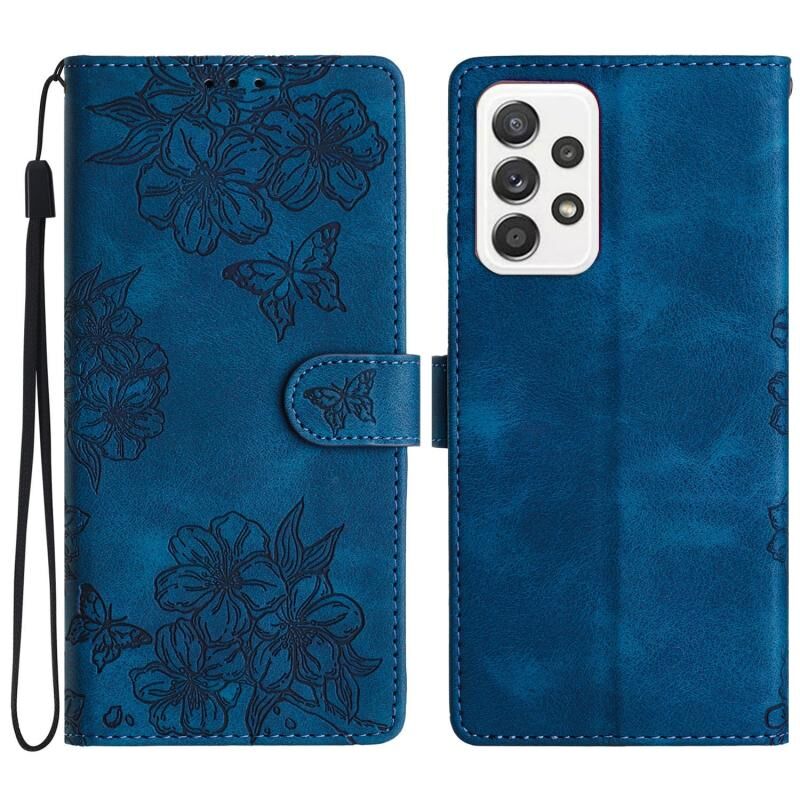 Θήκη κινητού τηλεφώνου Samsung Galaxy A52 5G Cherry Blossom Butterfly Skin Feel Embossed PU (Κόκκινη)