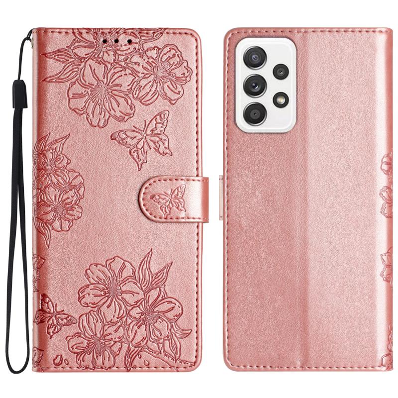 For Samsung Galaxy A52 5G Cherry Blossom Butterfly Skin Feel Embossed PU Phone Case(Rose Gold)