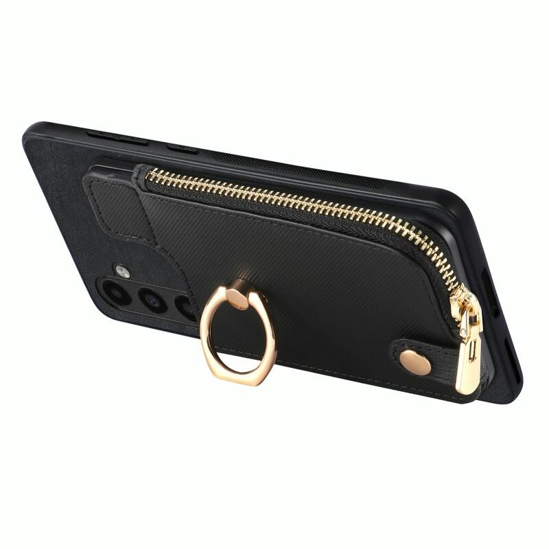 Για Samsung Galaxy A52 5G Cross Δερμάτινο δαχτυλίδι κάθετη φερμουάρ πορτοφόλι πίσω υπόθεση τηλεφώνου (Μαύρο)
