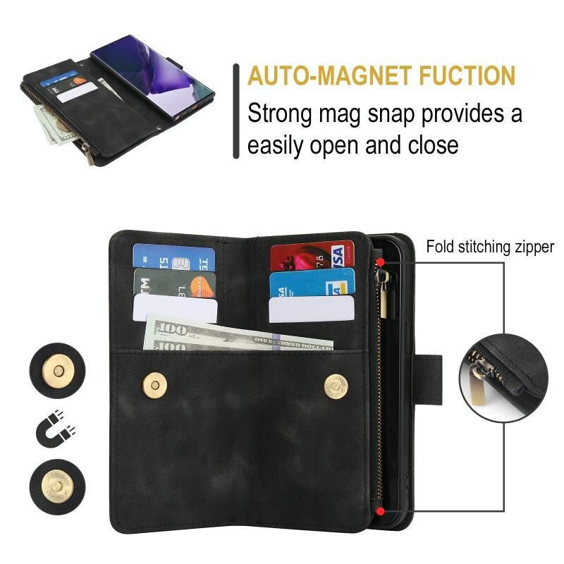 2. Λειτουργία πορτοφολιού πολλαπλών καρτών: 9 υποδοχές για κάρτες και 1 θήκη μετρητών με φερμουάρ για να αποθηκεύετε τις πιστωτικές σας κάρτες, μετρητά ή μικρά χαρτονομίσματα για τις καθημερινές σας ανάγκες.