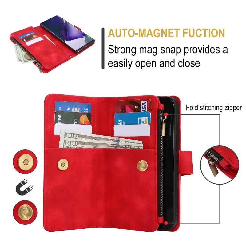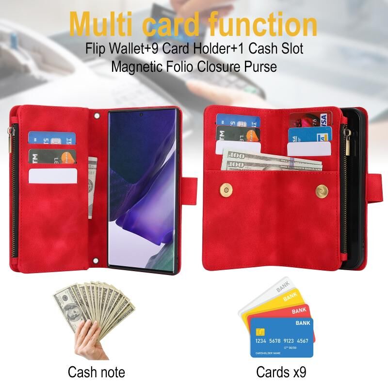2. Λειτουργία πορτοφολιού πολλαπλών καρτών: 9 υποδοχές για κάρτες και 1 θήκη μετρητών με φερμουάρ για να αποθηκεύετε τις πιστωτικές σας κάρτες, μετρητά ή μικρά χαρτονομίσματα για τις καθημερινές σας ανάγκες.