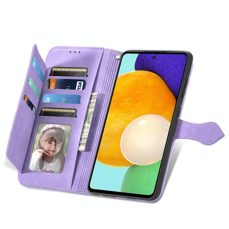 Για Samsung Galaxy A52 5G ανάγλυφο λουλούδι Shockproof δέρμα τηλέφωνο υπόθεση (μωβ)