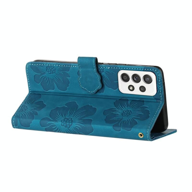 Για Samsung Galaxy A52 5G λουλούδι ανάγλυφο μοτίβο δερμάτινη θήκη τηλεφώνου (μπλε)
