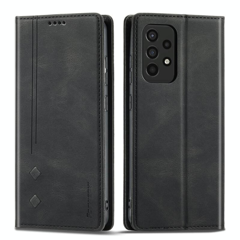 Για Samsung Galaxy A52 5G Forwenw F2 Series Μαγνητική οριζόντια αναδιπλούμενη δερμάτινη θήκη με υποδοχές για κάρτες και πορτοφόλι (Μαύρο) (Forwenw)