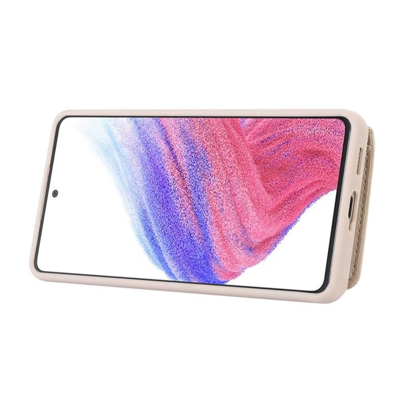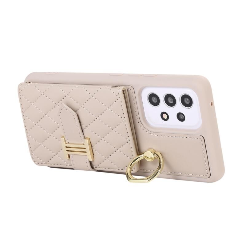 Για Samsung Galaxy A52 5G Οριζόντια κάρτα τσάντα δαχτυλίδι τσάντα κάτοχος υπόθεση τηλεφώνου με διπλό κορδόνι (μπεζ)