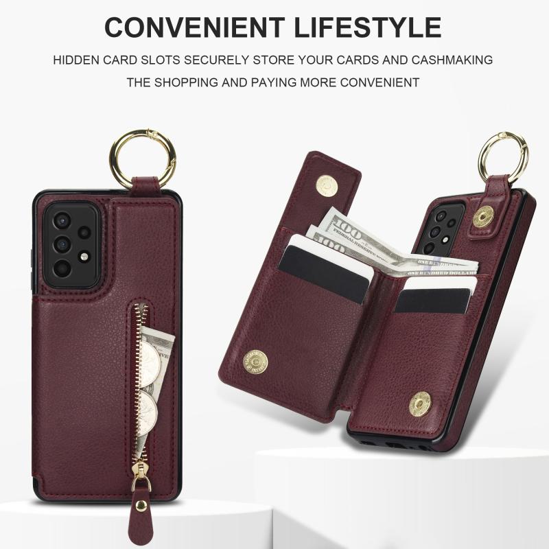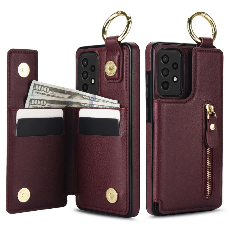 For Samsung Galaxy A52 5G Litchi Texture Zipper Double Buckle Card Bag Phone Case(Maroon Red)