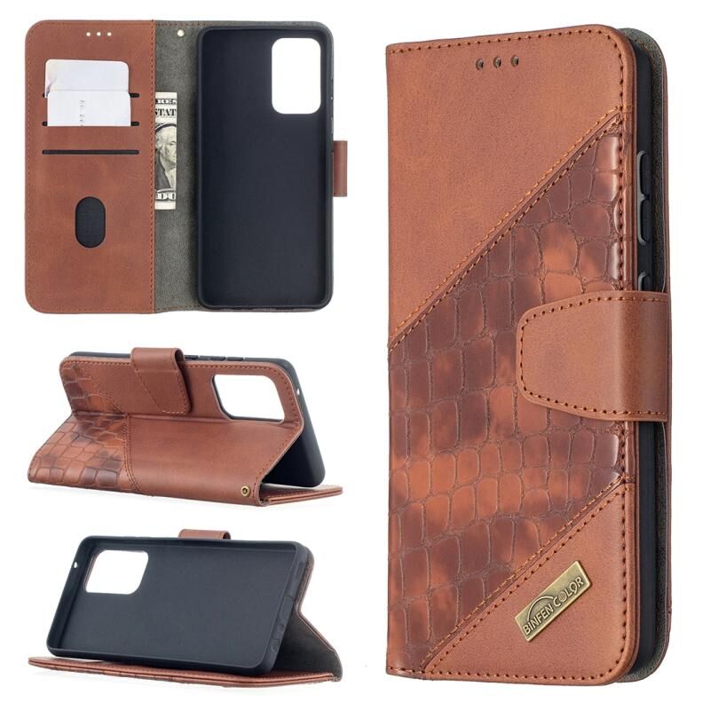Θήκη Samsung Galaxy A52 5G Οριζόντια Δερμάτινη PU με Υφή Κροκόδειλου σε Αντίστοιχο Χρώμα με Θήκη Πορτοφολιού, Στήριξη & Θήκες Καρτών (Καφέ)