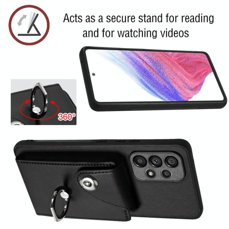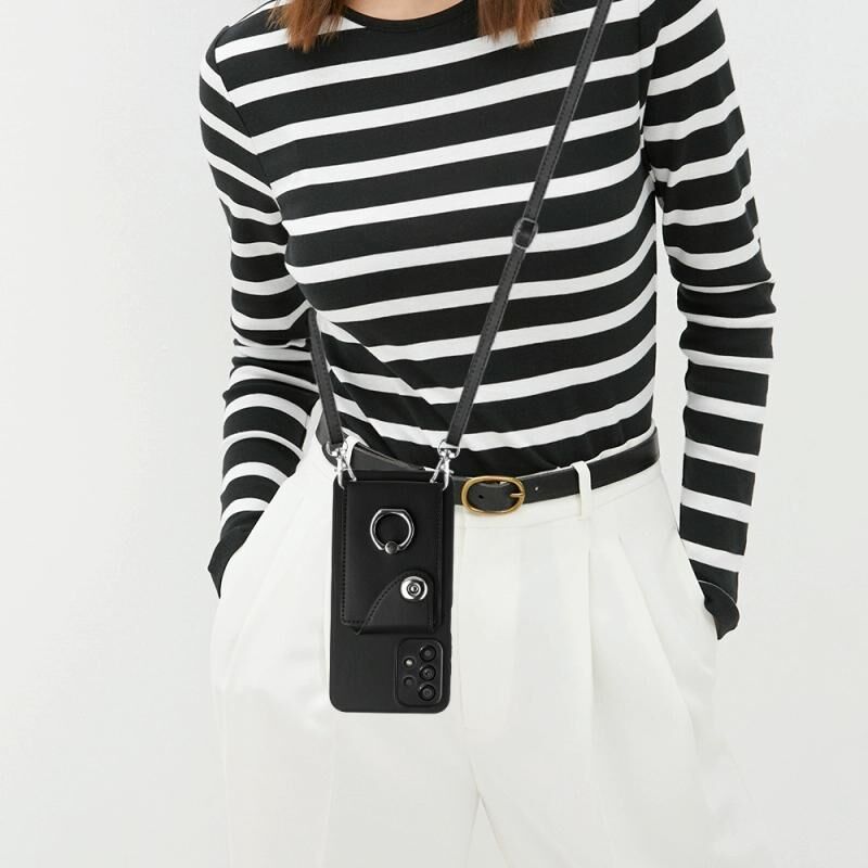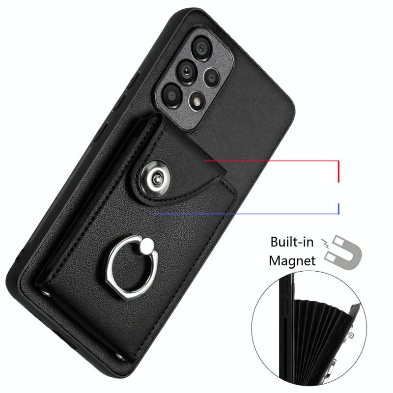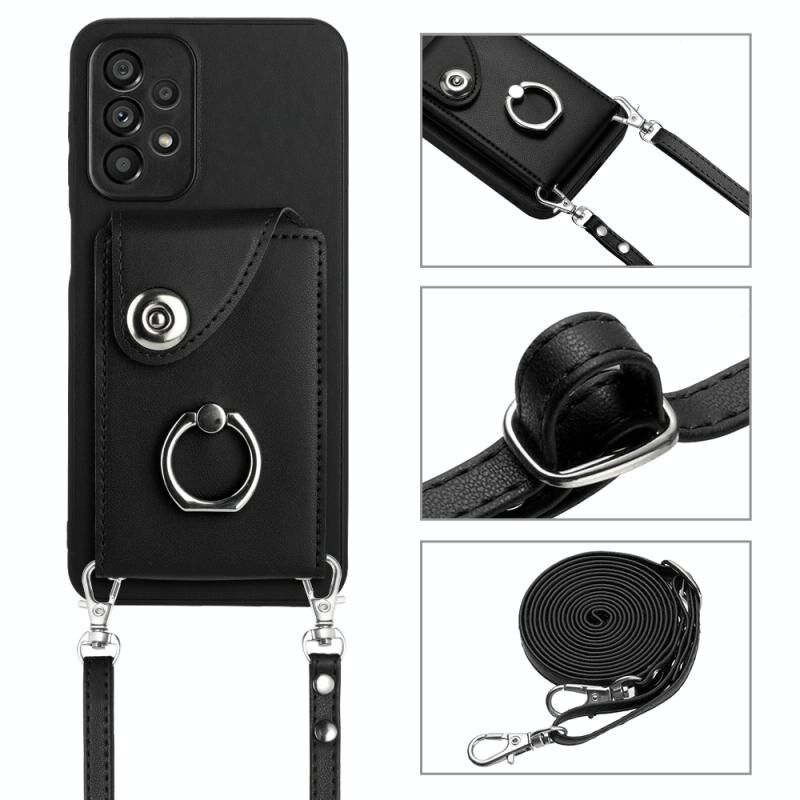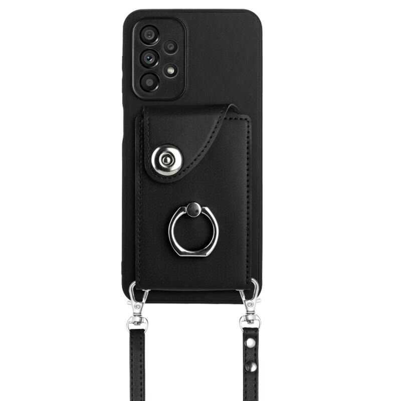 Για Samsung Galaxy A52 5G Οργανική κάρτα τσάντα τσάντα δαχτυλίδι κάτοχος θήκη τηλεφώνου με μακρύ κορδόνι (Μαύρο)