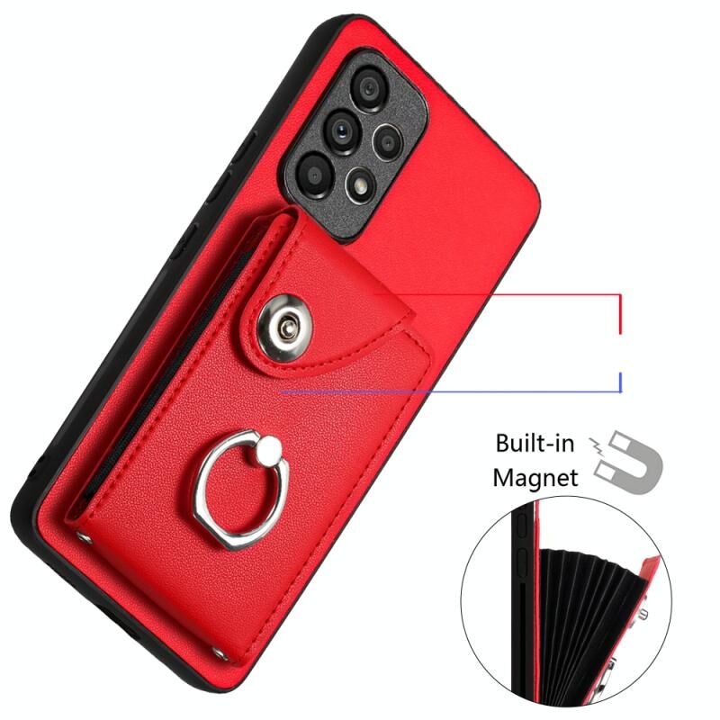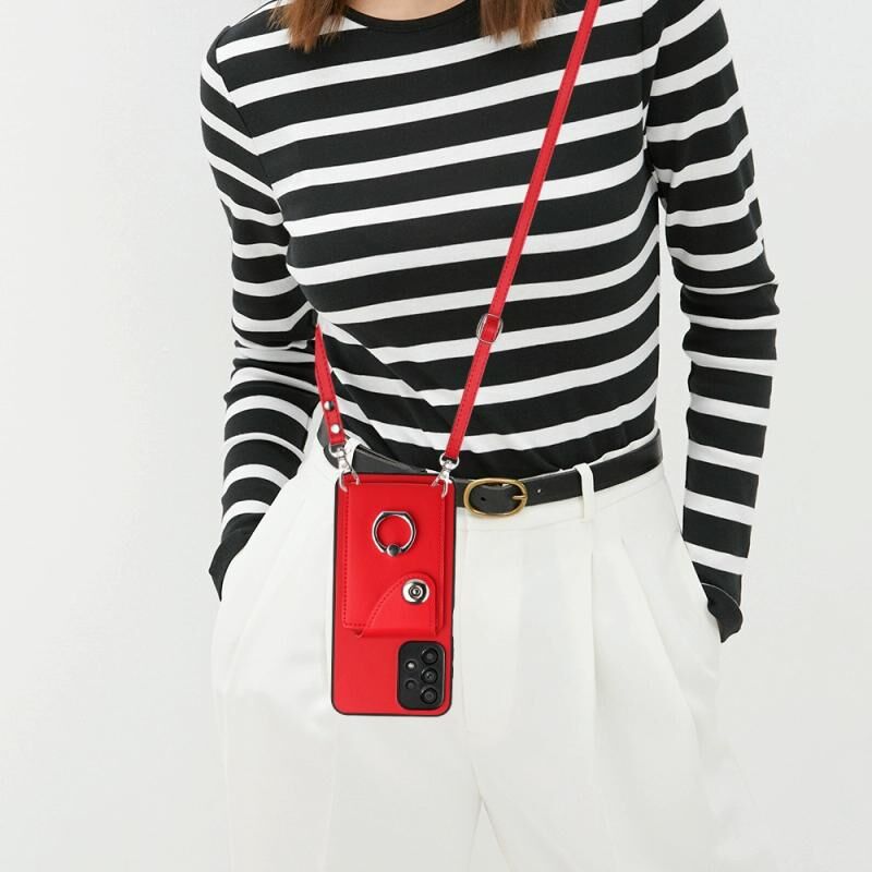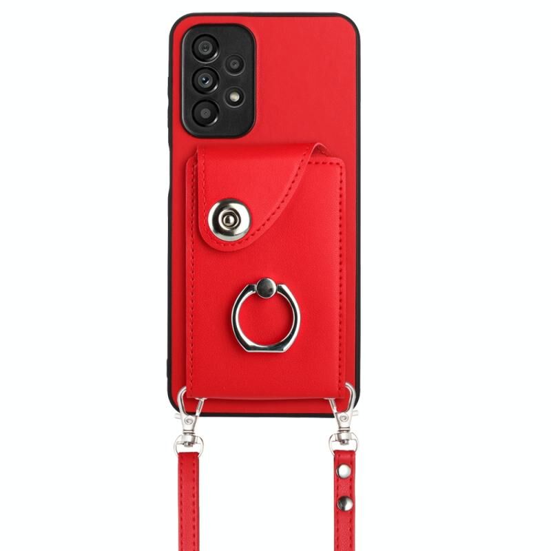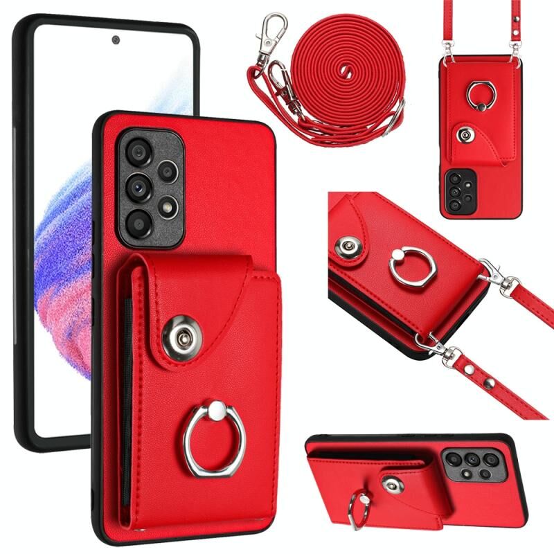 Για Samsung Galaxy A52 5G Οργανική κάρτα τσάντα τσάντα δαχτυλίδι κάτοχος υπόθεση τηλεφώνου με μακρύ κορδόνι (κόκκινο)