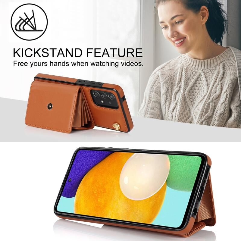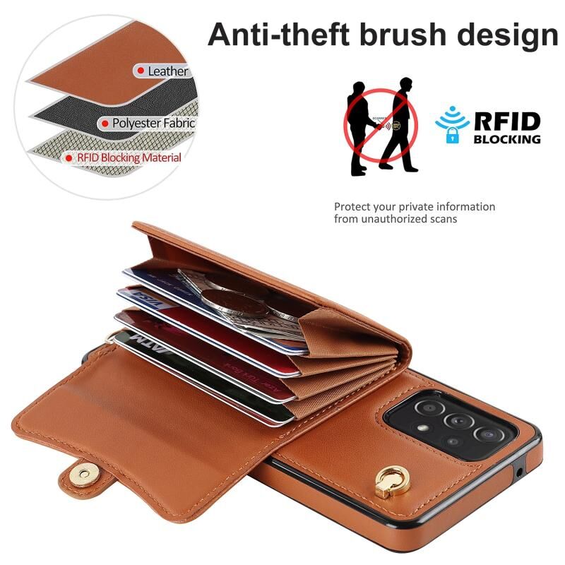 Για Samsung Galaxy A52 5G RFID Slot κάρτα δερμάτινη θήκη τηλεφώνου με μακρύ κορδόνι (Καφέ)
