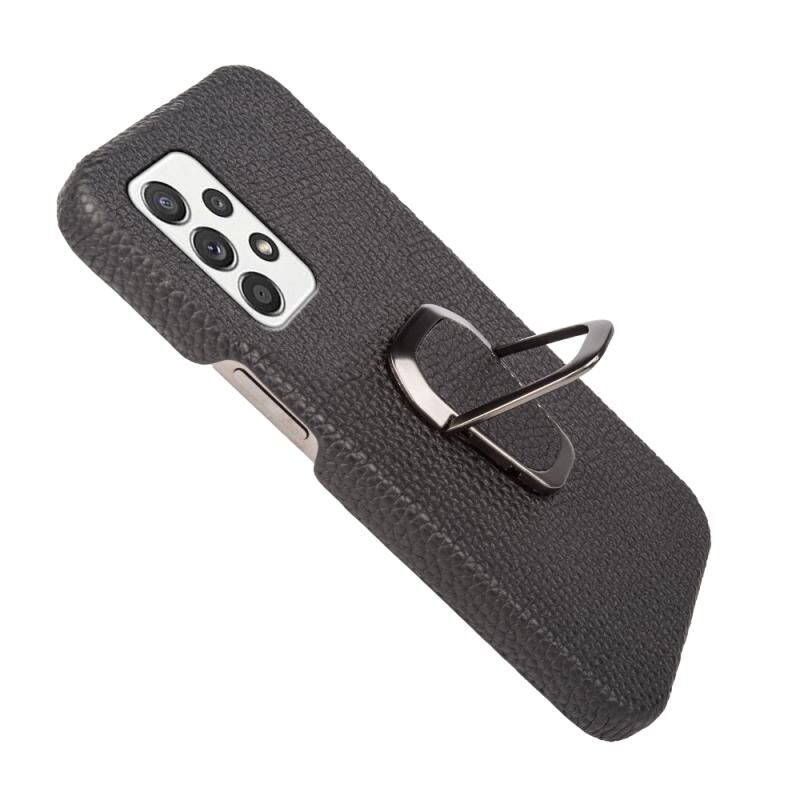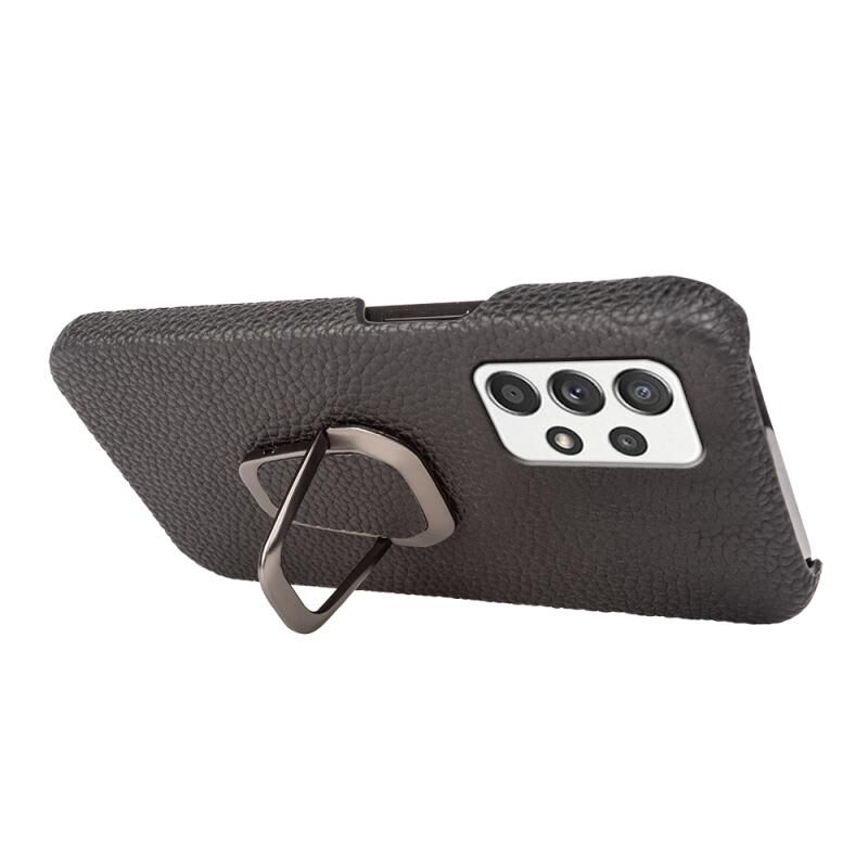 Θήκη τηλεφώνου Samsung Galaxy A52 5G με δακτύλιο και γνήσιο δέρμα υφής λύτσι (Μαύρο)
