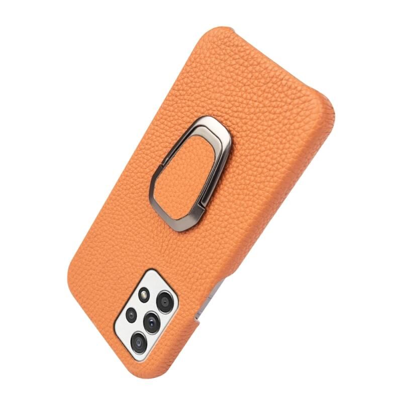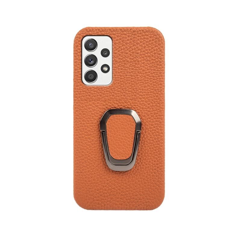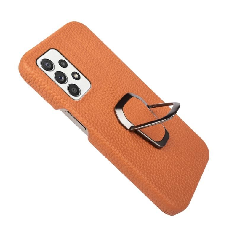 Θήκη τηλεφώνου Samsung Galaxy A52 5G με δακτύλιο και γνήσιο δέρμα υφής λύτσι (Καφέ)