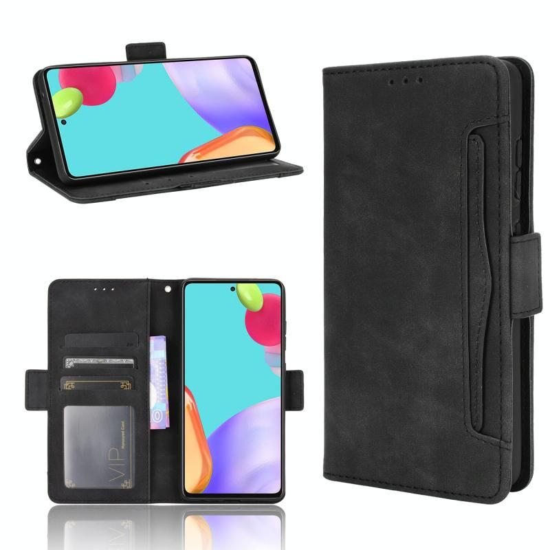 Για Samsung Galaxy A52 5G δέρμα αίσθηση μοσχάρι μοτίβο οριζόντια Flip δερμάτινη θήκη με θήκη & υποδοχές για κάρτες & πλαίσιο φωτογραφιών (μαύρο)